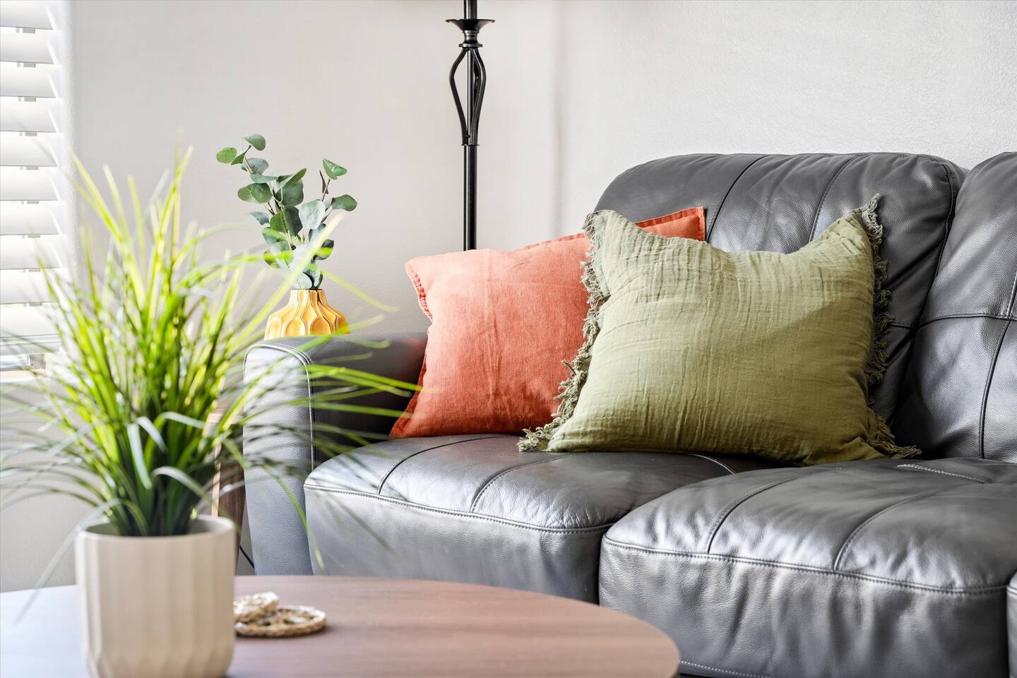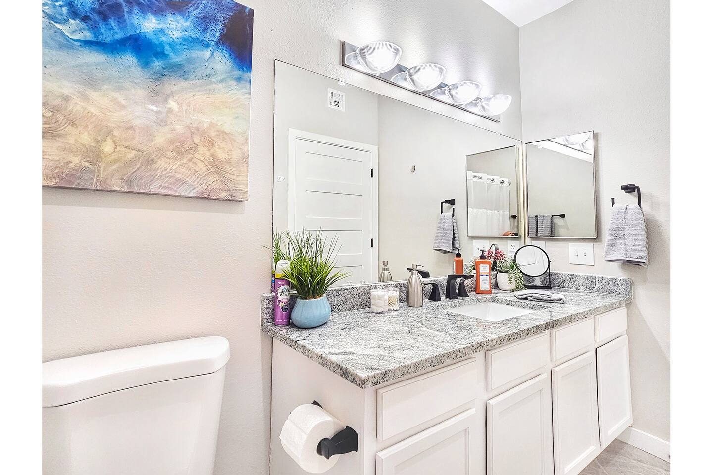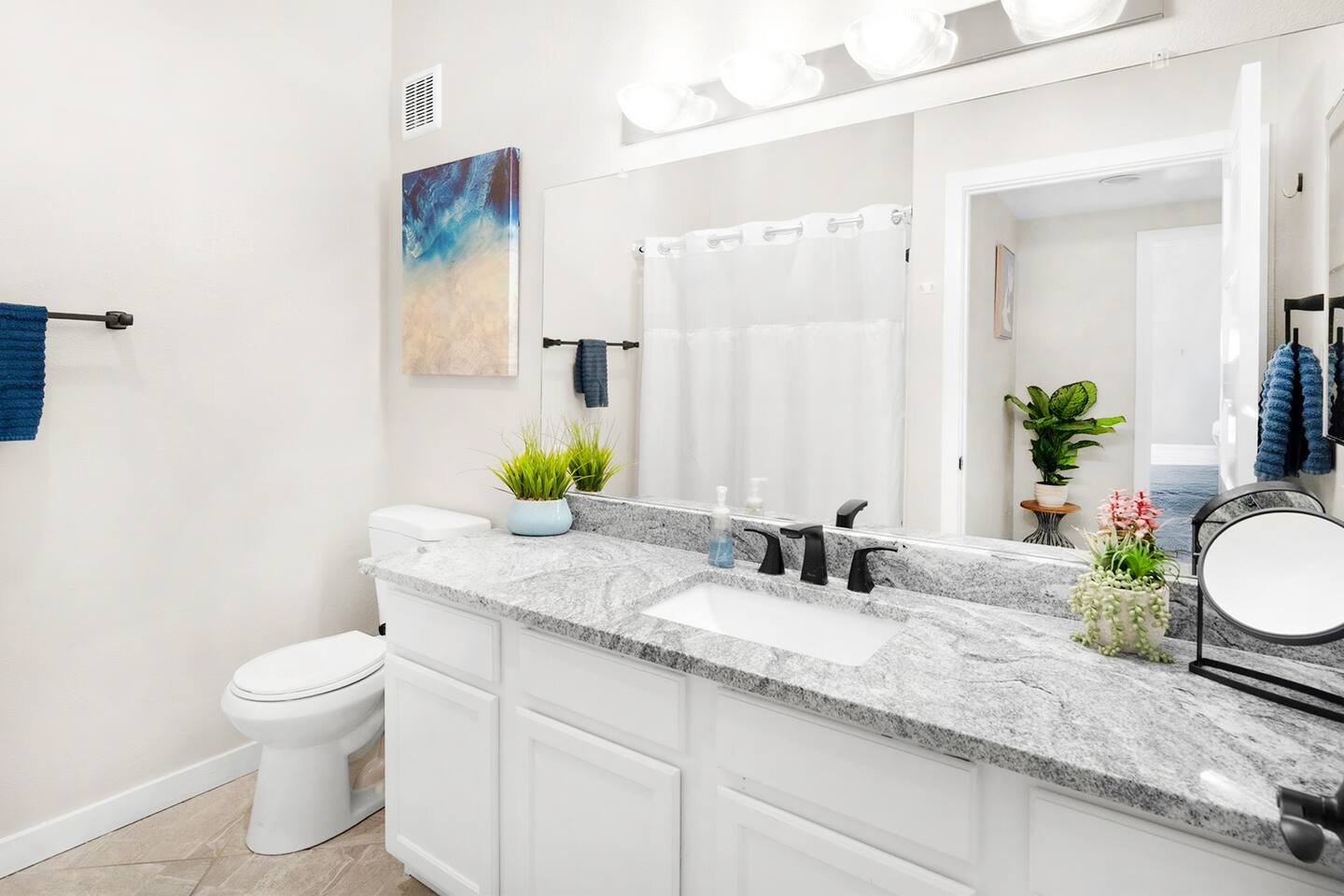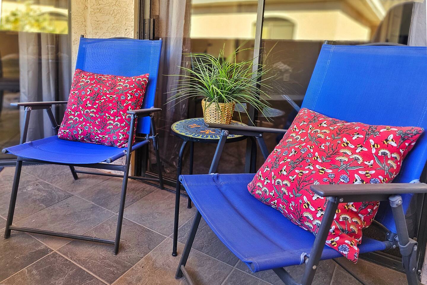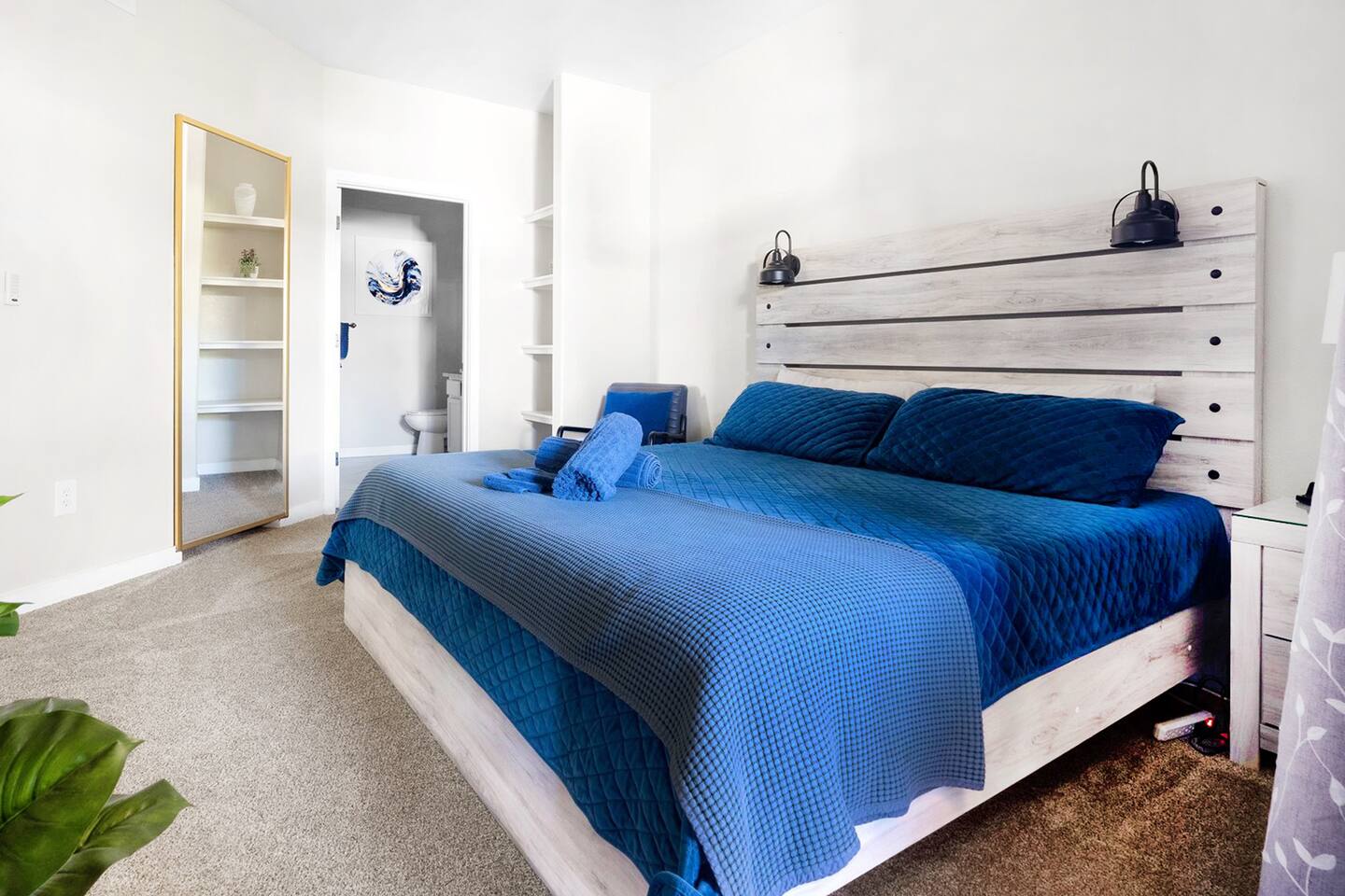 🛋️ Inside our property: Living Room: Step into a bright, open-concept living area with soaring ceilings and arched windows that flood the space with natural light. A plush couch and 65" smart TV create the perfect spot to unwind after a day exploring Phoenix. Sliding glass doors lead to a private balcony—ideal for morning coffee or golden hour lounging. A queen size air mattress with extra bedding is available for extra guests. Kitchen & Dining: The fully equipped kitchen features granite countertops with a breakfast bar, barstools, and all the essentials for cooking at home. Whether you're whipping up a quick breakfast or hosting a cozy dinner, you'll find everything from cookware to wine glasses ready to go. Adjacent to the kitchen is a dining nook with seating for four along with extra chairs for guests. Baby utensils and a folding high chair are also available for our little guests! Primary Bedroom: Your private sanctuary awaits with a king bed, 60" smart TV, walk-in closet, and en-suite bathroom. The spa-inspired bathroom boasts a rainfall shower with pebble flooring, modern fixtures, and plenty of counter space. Soft lighting and blackout curtains ensure restful nights. Second Bedroom: Perfect for additional guests or extra privacy, this bedroom offers a king bed, generous closet space, and easy access to the second full bathroom. Thoughtful touches like bedside lamps, charging stations, and cozy linens make it feel like home. An easy to fold pack 'n play crib is available for your little ones to sleep and play in. Bathrooms: Both bathrooms are full-sized and feature updated vanities, sleek tilework, and hotel-quality towels. The second bathroom includes a tub/shower combo—great for families or longer stays. Laundry Area: A full-sized washer and dryer are tucked into a hallway closet, along with detergent and basic cleaning supplies. Ideal for extended stays or keeping things fresh after a desert hike. Balcony: Your private outdoor space overlooks the quiet interior of the gated community. With seating and shade, it’s a peaceful spot to read, sip, or simply breathe in the Arizona air. Pool, Hot Tub, Gym & BBQ: Guests will have full access to all these resort style amenities. Please note: This property does not have an elevator. The unit is located on the second floor and is accessible via one flight of stairs with a total of 19 steps. Guests should be comfortable using stairs to access the home. Driving Time/Distances from the complex: Phoenix Events Complex: 1.5 miles /5 min Desert West Sports Complex: 3.2 miles /8 min Desert Park West: 3.2 miles /8 min State Farm Stadium : 4.5 miles /10 min Desert Diamond Arena: 4.5 miles /10 min Westgate Entertainment District: 4.6 miles /10 min Desert Diamond Casino: 5.0 miles /12 min Ak-Chin Pavilion: 7.5 miles / 15 min Footprint Center: 13.5 miles /22 min Chase Field: 13.7 miles /22 min Phoenix Sky Harbor International Airport: 18.5 miles /25 min Phoenix Raceway: 19.8 miles /28 min