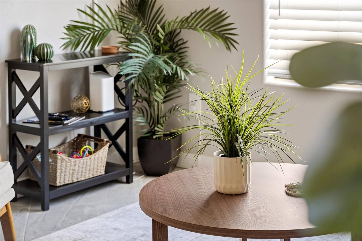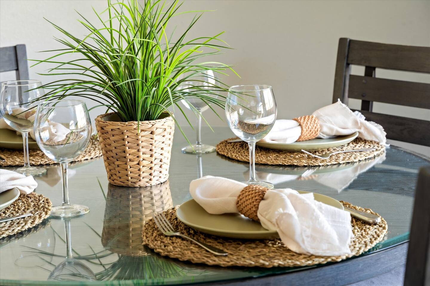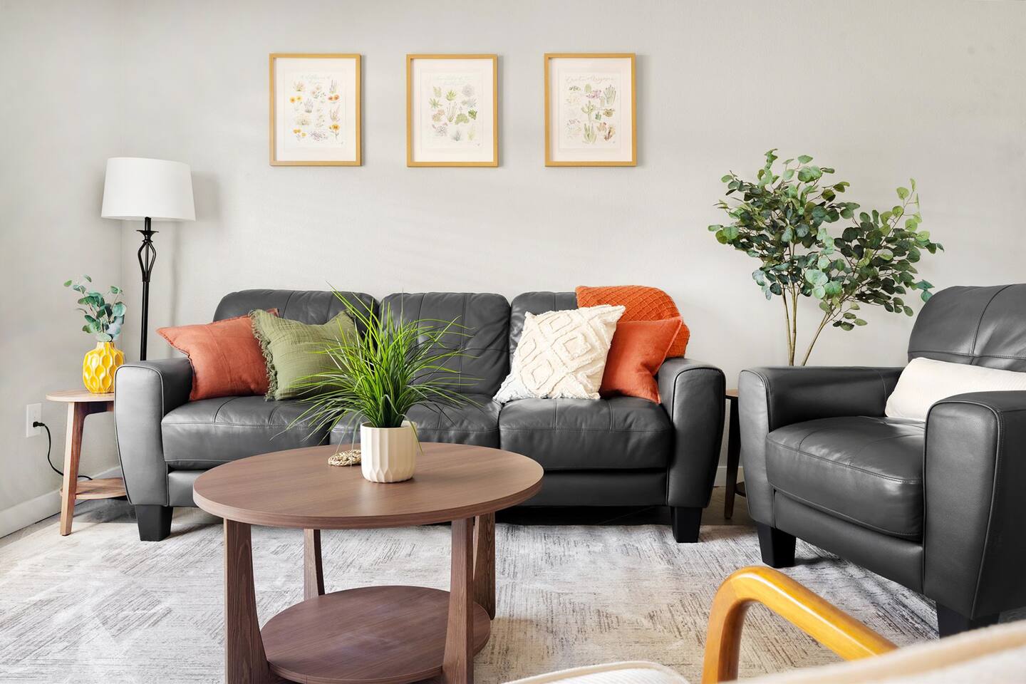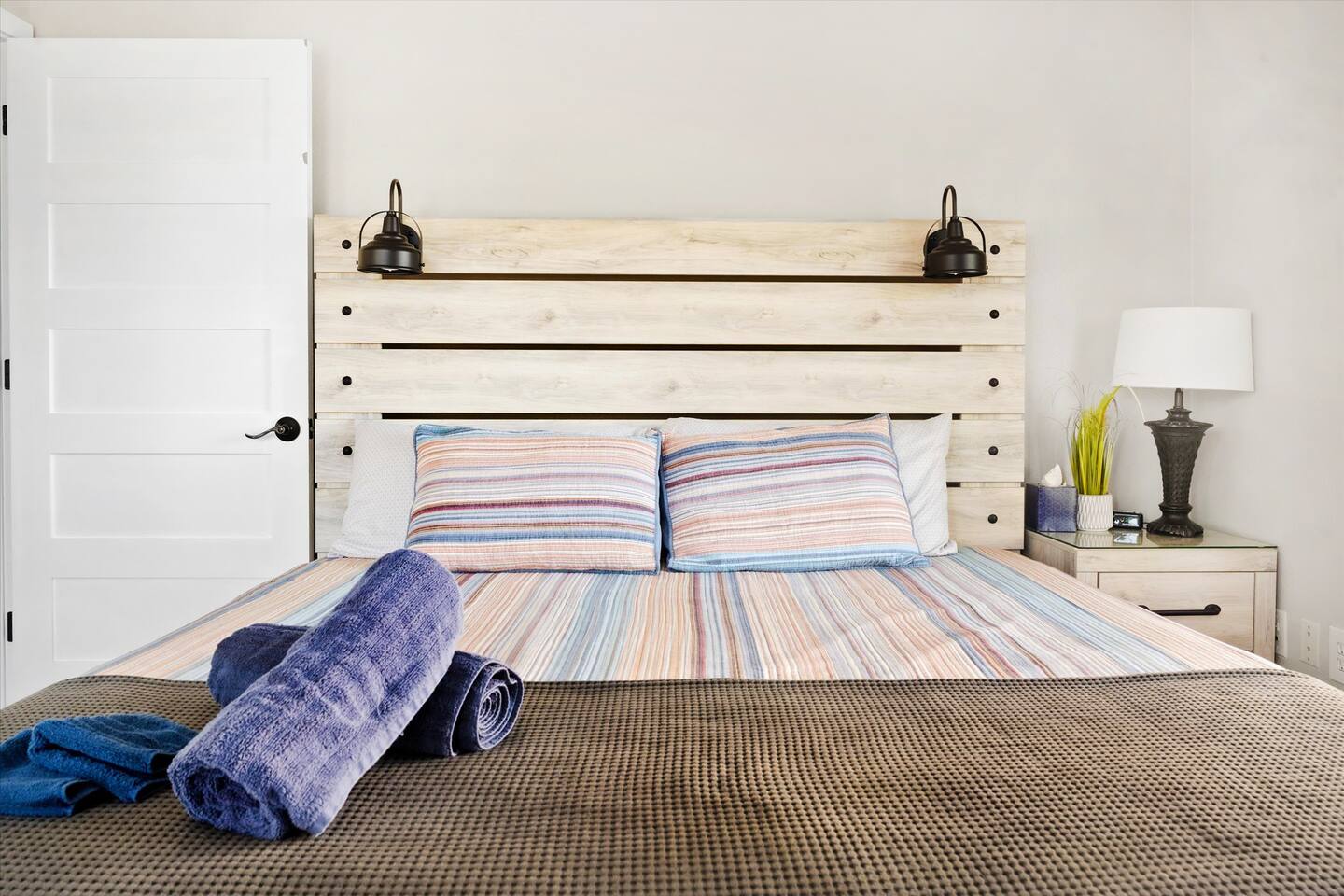🛋️ Inside our property: Living Room: Step into a bright, open-concept living area with soaring ceilings and arched windows that flood the space with natural light. A plush couch and 65" smart TV create the perfect spot to unwind after a day exploring Phoenix. Sliding glass doors lead to a private balcony—ideal for morning coffee or golden hour lounging. A queen size air mattress with extra bedding is available for extra guests. Kitchen & Dining: The fully equipped kitchen features granite countertops with a breakfast bar, barstools, and all the essentials for cooking at home. Whether you're whipping up a quick breakfast or hosting a cozy dinner, you'll find everything from cookware to wine glasses ready to go. Adjacent to the kitchen is a dining nook with seating for four along with extra chairs for guests. Baby utensils and a folding high chair are also available for our little guests! Primary Bedroom: Your private sanctuary awaits with a king bed, 60" smart TV, walk-in closet, and en-suite bathroom. The spa-inspired bathroom boasts a rainfall shower with pebble flooring, modern fixtures, and plenty of counter space. Soft lighting and blackout curtains ensure restful nights. Second Bedroom: Perfect for additional guests or extra privacy, this bedroom offers a king bed, generous closet space, and easy access to the second full bathroom. Thoughtful touches like bedside lamps, charging stations, and cozy linens make it feel like home. An easy to fold pack 'n play crib is available for your little ones to sleep and play in. Bathrooms: Both bathrooms are full-sized and feature updated vanities, sleek tilework, and hotel-quality towels. The second bathroom includes a tub/shower combo—great for families or longer stays. Laundry Area: A full-sized washer and dryer are tucked into a hallway closet, along with detergent and basic cleaning supplies. Ideal for extended stays or keeping things fresh after a desert hike. Balcony: Your private outdoor space overlooks the quiet interior of the gated community. With seating and shade, it’s a peaceful spot to read, sip, or simply breathe in the Arizona air. Pool, Hot Tub, Gym & BBQ: Guests will have full access to all these resort style amenities. Please note: This property does not have an elevator. The unit is located on the second floor and is accessible via one flight of stairs with a total of 19 steps. Guests should be comfortable using stairs to access the home. Driving Time/Distances from the complex: Phoenix Events Complex: 1.5 miles /5 min Desert West Sports Complex: 3.2 miles /8 min Desert Park West: 3.2 miles /8 min State Farm Stadium : 4.5 miles /10 min Desert Diamond Arena: 4.5 miles /10 min Westgate Entertainment District: 4.6 miles /10 min Desert Diamond Casino: 5.0 miles /12 min Ak-Chin Pavilion: 7.5 miles / 15 min Footprint Center: 13.5 miles /22 min Chase Field: 13.7 miles /22 min Phoenix Sky Harbor International Airport: 18.5 miles /25 min Phoenix Raceway: 19.8 miles /28 min
