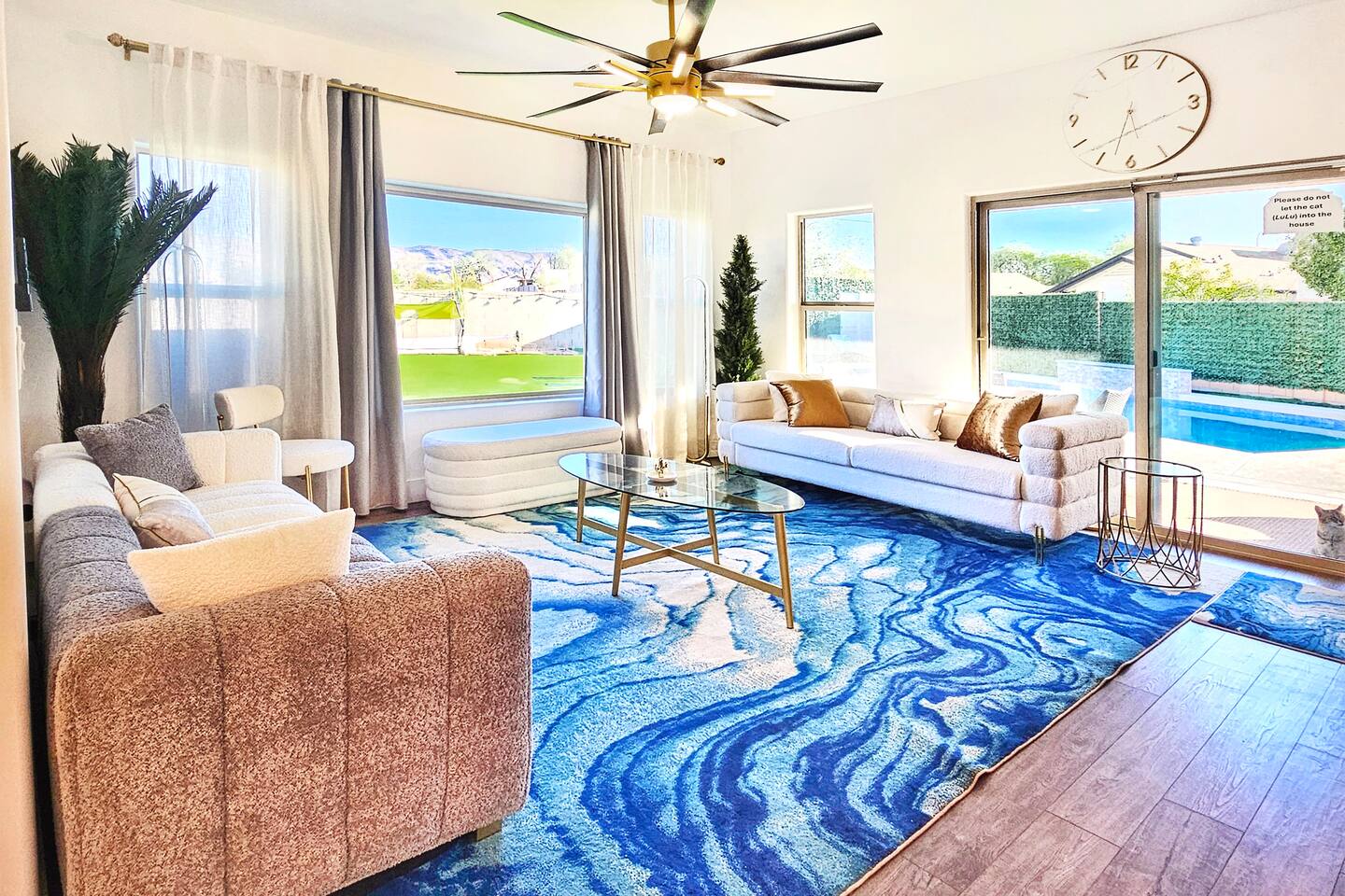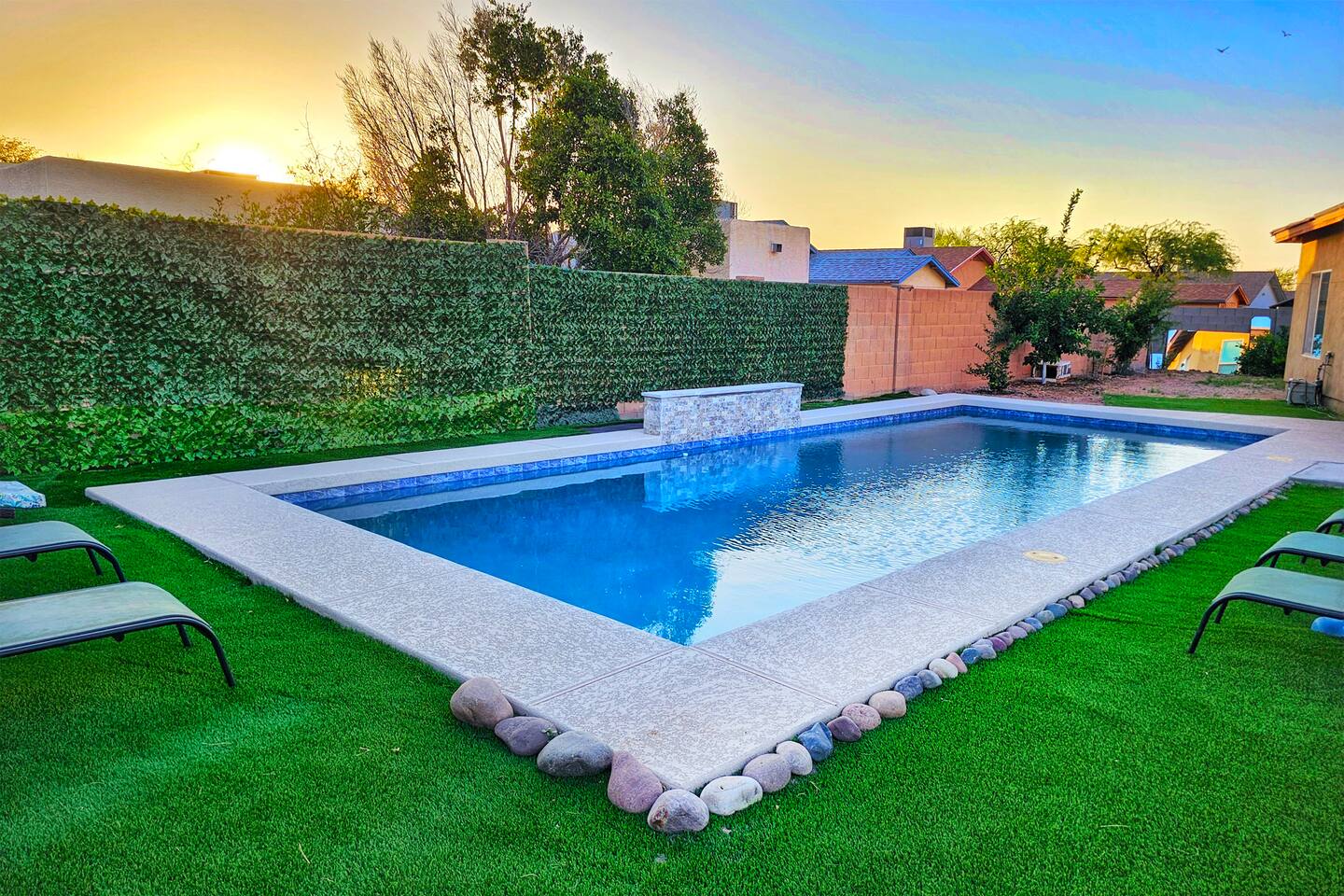 Situated in a peaceful, quiet neighborhood with scenic mountain and sunset views, our home offers the perfect combination of serenity and convenience. You’ll be just minutes from Downtown Phoenix, Sky Harbor Airport, top-rated public golf courses, scenic hiking trails, and iconic attractions like Mystery Castle. Major grocery stores and popular restaurants are located within half a mile of the home. Please note: Parties and loud music are strictly prohibited at this residence. Step into your private outdoor oasis, where pool heating is already available for your enjoyment. The oversized backyard is covered in plush artificial grass and features multiple sun loungers for soaking up the Arizona sun. A covered patio invites you and your guests to dine while watching stunning painted-sky sunsets, and a propane grill makes poolside gatherings even more enjoyable. Family-friendly fun awaits with multi-use badminton, volleyball, and basketball nets. Inside, the home is thoughtfully furnished with modern upgrades, including brand-new couches, stylish rugs, and updated light fixtures. The fully stocked kitchen is ready for home-cooked meals, while ceiling fans in every bedroom provide added comfort. A dedicated office space makes it easy to balance work and play, and for a unique twist, a hidden speakeasy-style entrance leads to the master suite and office—creating a memorable and fun experience for guests. Drive Times The Legacy Golf Club (Public): 5 min The Raven Golf Club (Public): 8 min Sky Harbor Airport: 10 min Downtown Phoenix: 10 min Downtown Tempe: 20 min Phoenix Zoo: 20 min Phoenix Botanical Gardens: 20 min Sloan Park (Cubs Stadium): 20 min Old Town Scottsdale: 25 min State Farm Stadium: 25 min Salt River Fields at Talking Stick: 30 min Book your stay today and experience Phoenix with the perfect blend of comfort, luxury, and adventure!