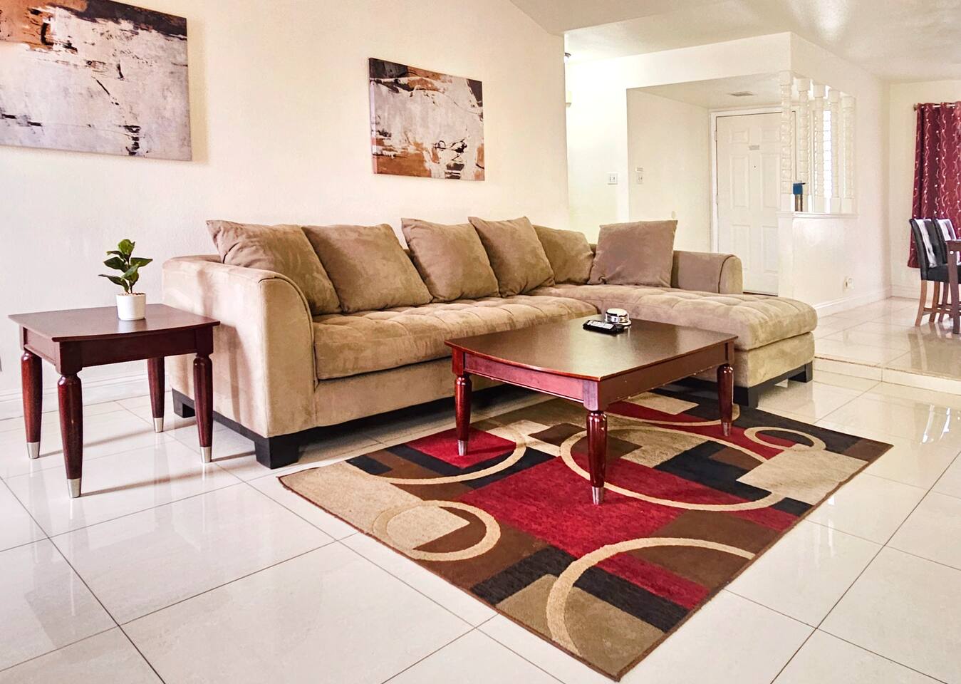 Located just minutes from The Strip, this modern 3 bedroom 2 bathroom home is tucked away in a quiet, family neighborhood within walking distance to major grocery stores, casual dining restaurants, fast food and bus stops. Take advantage of no resort fees and plenty of free parking directly in front of the house. Each bedroom has it's own HDTV, work desk, plush bedding and dressers. Complete with fast and free WiFi, premium cable TV, Netflix, reliable central AC & heat, laundry, fully equipped kitchen, hot showers and all living essentials. Grill dinner on the BBQ grill or just relax around the fire pit in the private backyard with a GORGEOUS panoramic view of The Strip! Book your stay today! ***Sorry, but parties and loud music are prohibited at this residence.*** *If this property is unavailable for the dates you requested, please click on my profile to see additional, local listings! Check-in: You may self check-in anytime after 4pm and as late as you like. Early Arrivals: We are unable to allow early check-ins or luggage drops offs before 4pm. If our housekeeper happens to finish early we will notify you that you may check-in as soon as she's finished. You may also check your luggage at the front desk of any major hotel for free. The closest hotel to the house that is currently open is The Palms. Pets: Guests are welcome to bring pets provided they are house trained and fairly quiet. Guests must notify us that they will be bringing their pets when booking. Parking: Guests may park up to 2 cars in the driveway. There is also plenty of additional free street parking directly in front of the house. Getting Around - Transportation: Walking: Walk to the Grocery Store, Casual Dining, Fast Food, Bars, Casinos and Bus Stop: (5 - 7 min walk) Bus: The 202 Bus will take you directly to and from The Strip. The 202 Bus operates 24 hours a day 7 days a week. Bus frequency is approximately every 15 minutes. Bus Ride to The Strip: (5 min) Bus fare per person: Single Ride: $2 3 Hour Pass: $3 24 Hour Pass: $5 Uber/Lyft/Taxi: Each pick up and drop off directly from the house and will take you anywhere you need to go. Driving Times/Fare: The Strip: (5 - 7 min/$5 - $7) T-Mobile Arena : (7 - 10 min/$7 - $10) Raider Stadium : (7 - 10 min/$7 - $10) Airport: (10 - 15 min/$10 - $15) The Convention Center: (10 - 15 min/$10 - $15) Downtown & Freemont Street: (10 - 15 min/$10 - $15) The Space: Master Bedroom: -Plush King bed with hypo-allergenic encasements. -Bedside power chargers with multiple outlets. -60 inch HDTV with free streaming HDTV. -Work desk and chair. -Large dresser. -Additional Drawers and Shelves for storage. -Iron and ironing boards. -Blackout curtains -Wall mirror. -Vaulted ceiling. -Bedside fan. -Sound machine for sleeping. Attached Master Bathroom: -Shower. -Toilet. -Two sinks. -Towels. -Hair dryer. -Complimentary Toiletries (Shampoo, Conditioner, Body Wash Soap). 2 Guest Bedrooms: -Plush queen beds with hypo-allergenic encasements. -Bedside power chargers with multiple outlets. -HDTV's with free streaming HDTV. -Spacious Closets. -Additional Drawers and Shelves for storage. -Blackout curtains -Iron and ironing boards. -Wall mirrors. Guest Bathroom: -Shower and Tub. -Toilet. -Sink. -Towels. -Hair Dryer. -Complimentary Toiletries (Shampoo, Conditioner/Body Wash Soap). Living Room: -60" HDTV with HDMI connections. -Free Cable TV and Netflix. -Large, comfy sectional couch. -Extra sheets, pillows and comforter for plush queen air mattress in closet. Dining Room: -Solid Dining Table with 6 chairs. Extra chairs are available on the patio. -Complete dining set with plates, silverware, glasses, coffee mugs, etc. -Office: -Large, spacious office desk. -Executive chair. -Extra storage cabinets and shelves,. Outdoor Patio: -Fire Pit. -BBQ Grill. -Chairs for 8 people. Kitchen: -Large Oven. -Large Stove. -Large Microwave. -Large Refrigerator. -Large Freezer. -Ice Trays. -Brita Filtered Water Pitcher. -Coffee maker. -Tea Kettle. -Toaster. -Dishes, Glasses, and Utensils. -Pots, Pans, Cooking Utensils. -Coffee, Sugar, Creamer. -Cooking Spices and Condiments.