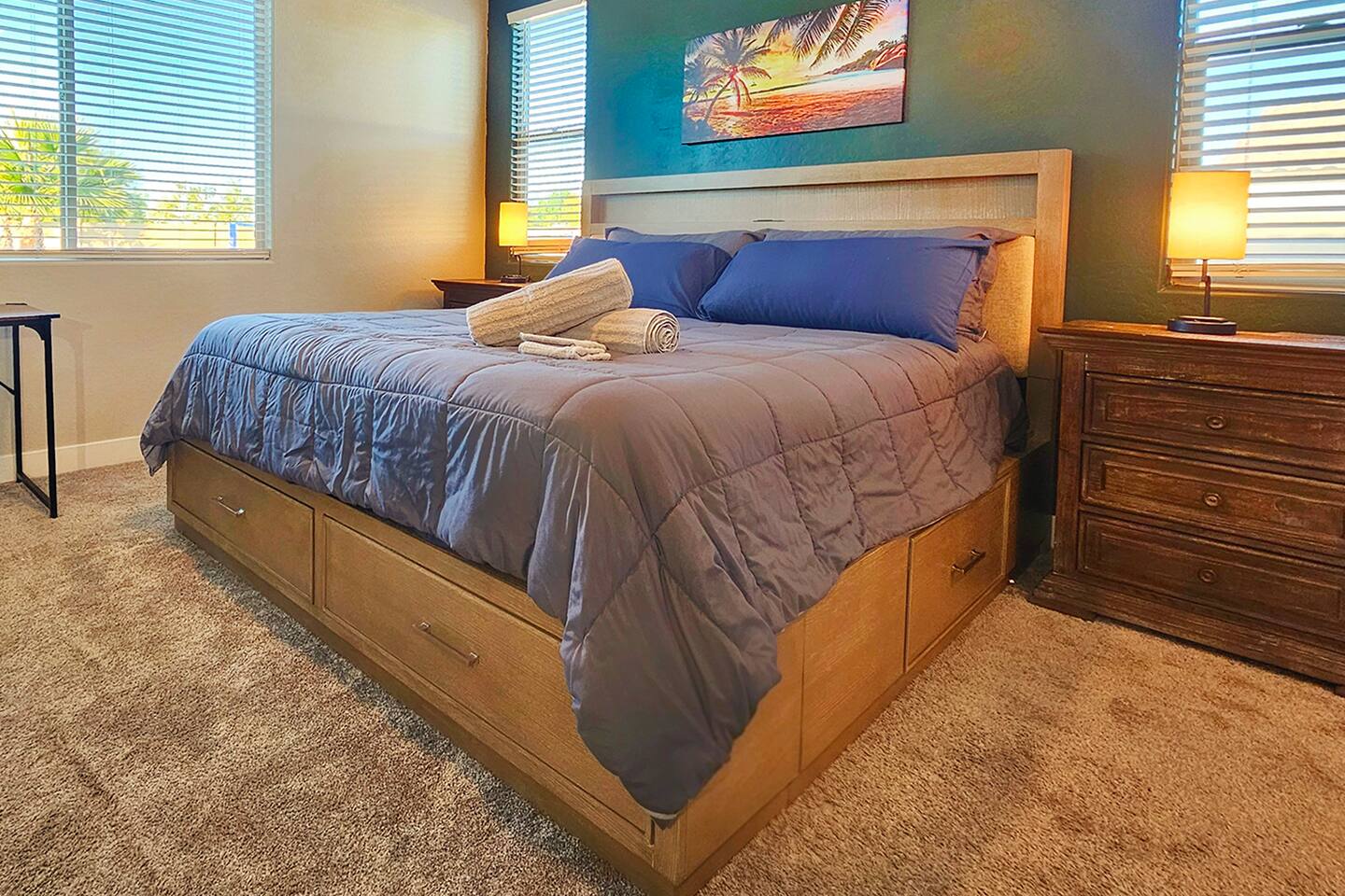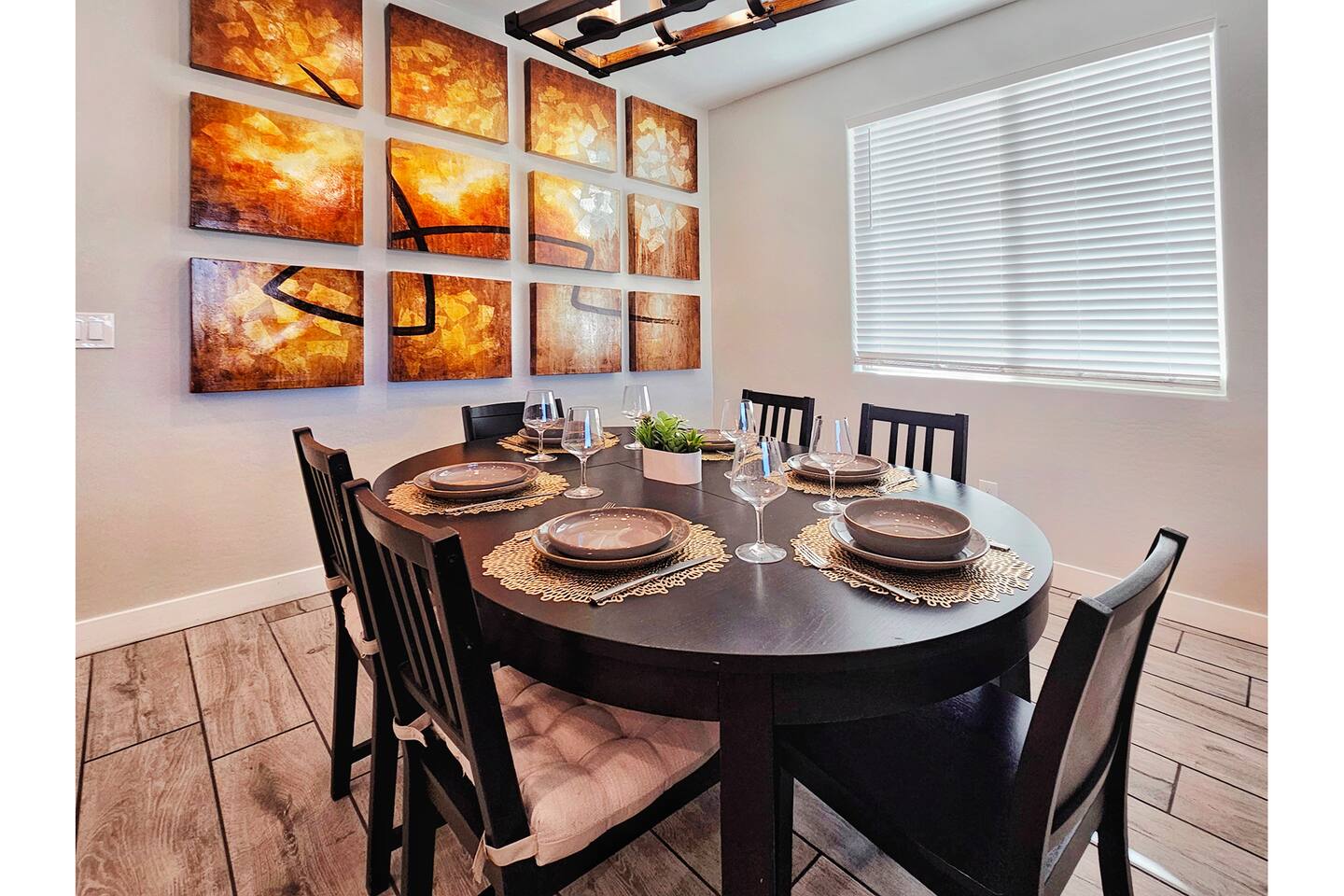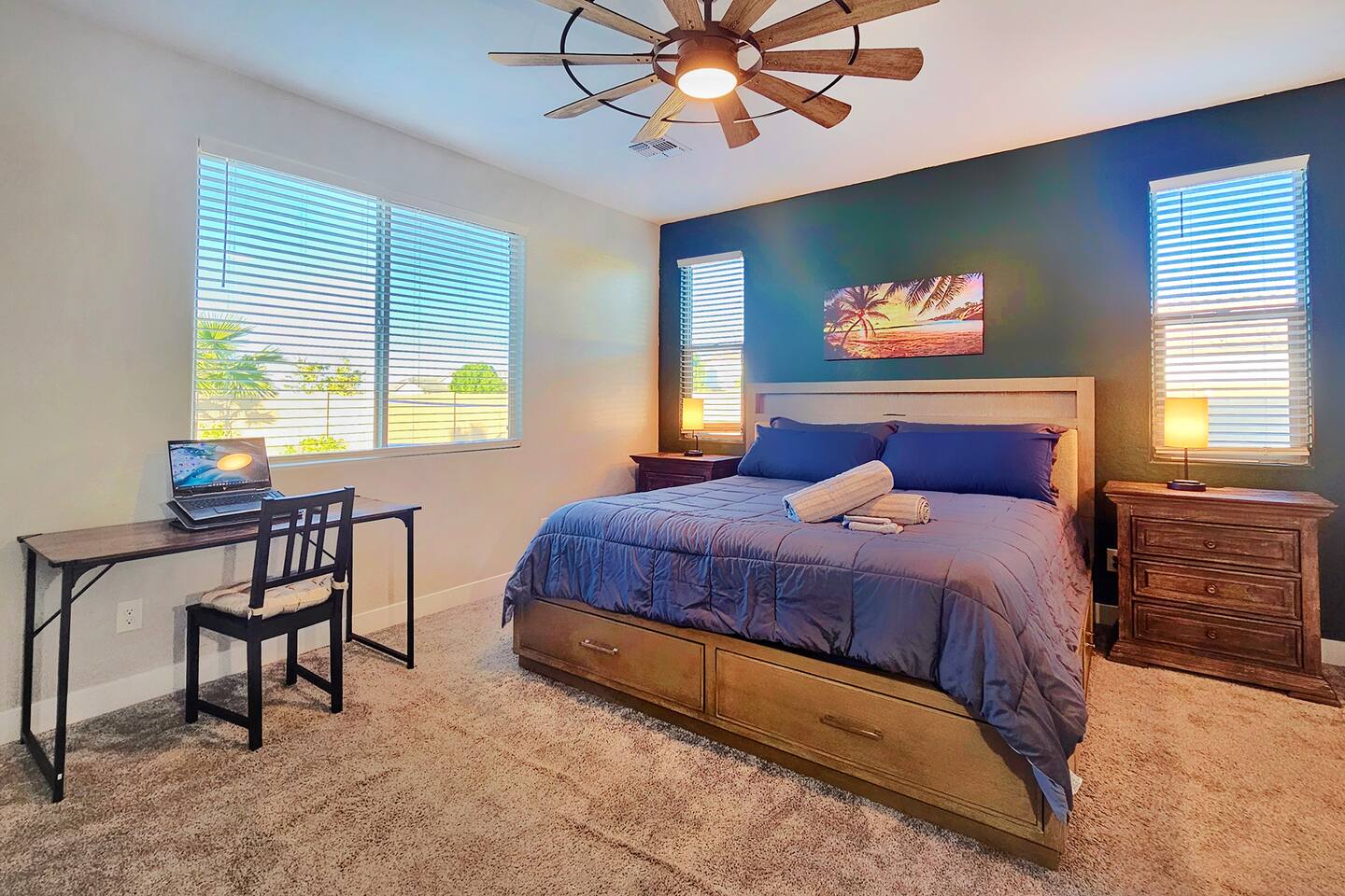 Welcome to a refined modern escape where style and comfort come together seamlessly. This stunning 4-bedroom residence offers a boutique-style vacation experience with high-end finishes, spacious interiors, and your own private heated pool, exclusively for guest use. Perfect for families, groups, golf travelers, and those looking to indulge in a serene Arizona retreat. 🌟 Step Into Luxury From the moment you enter, you’ll be greeted by a bright, open layout designed with sophistication and tranquility in mind. -4 beautifully appointed bedrooms -5 beds (1 king, 2 queens, 1 full, 1 queen plush air mattress). -3 full spa-inspired bathrooms. -Max capacity: Sleeps 10 comfortably. Each bedroom is outfitted with plush mattresses, high-quality linens to ensure a clean and restful night’s sleep. 🏡 Living Spaces The home’s expansive interiors provide multiple areas for relaxation and connection. Enjoy a luxurious living room with dual oversized, fully reclining couches, an 85 inch smart TV, electric fireplace, family games, designer décor, and a modern aesthetic. 🍽️ Chef’s Kitchen & Stylish Dining Prepare gourmet meals, casual breakfasts, or evening cocktails with ease. Enjoy meals indoors at the elegant dining area or step outside for an unforgettable al-fresco dining experience. Kitchen Includes: -Stainless steel appliances -Ample counter space -Fully stocked cookware and essentials -State of the art pasta maker 🌴 Private Heated Pool & Outdoor Paradise Your private backyard oasis awaits. Step outside onto the covered patio and discover your exclusive heated pool, perfect for refreshing morning dips, sun-soaked afternoons, or peaceful evening swims under the Arizona sky. Relax by the fire pit or grill on the BBQ. For recreation, sink putts on the private putting green or play a few rounds of badminton with the family. 🐾 Pet‑Friendly Paradise Traveling with your furry friends? Our home is designed with pets in mind! Enjoy a fully enclosed, spacious backyard perfect for playtime, plus an extra‑large outdoor dog kennel for added comfort. We provide pet bowls for convenience, and welcome up to 2 dogs during your stay. 🌄 Prime Litchfield Park Location Nestled in a peaceful, upscale neighborhood, this home blends luxury and convenience. You’ll be just minutes from: -Championship golf courses -Beautiful desert hiking trails -Local dining, grocery stores, shopping, and family attractions -Westgate Entertainment District -State Farm Stadium Enjoy the serenity of a quiet residential community while staying close to the best of the West Valley. 🏌️♂️Golf Enthusiast’s Getaway Our retreat is perfectly situated for golfers looking to hit the greens! Within minutes of the property, you’ll find some of the West Valley’s most popular public courses: Wigwam Golf Club – 8.9 miles away, offering three championship courses (Gold, Blue, and Red) with resort-style amenities. Palm Valley Golf Club – 10.2 miles away, known for wide fairways and a welcoming layout for all skill levels. Falcon Dunes Golf Course – 9.6 miles away, a scenic links-style course near Luke Air Force Base with White Tank Mountain views. Eagle’s Nest Golf Club (Pebble Creek) – approx. 11 miles away, featuring seven lakes and a beautiful desert setting. Whether you’re here for a quick round or a full golf vacation, these nearby courses make our home the ideal base for your stay!