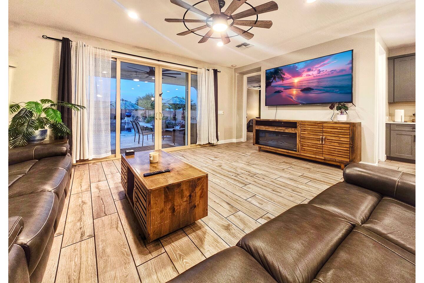 Escape to your desert oasis retreat! Our resort style 4-bedroom home offers a spacious, pet-friendly backyard with a large heated pool, putting green, fire pit and grill. Relax and watch the game on a 85" TV with fully reclining couches or cook home-made pasta in a chef inspired kitchen. Enjoy modern finishes, fast WiFi and a prime Litchfield Park location close to golf courses, dining, and stadiums. Perfect for families or business travelers seeking comfort and a memorable Arizona getaway!