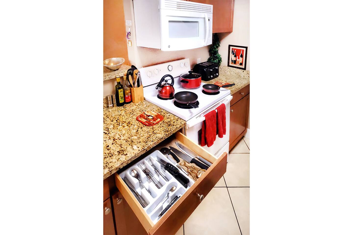 -Free Parking -Free Fast Wifi -Free Premium Cable TV with HBO -Free Steaming TV (Free access to Netflix, Pandora, YouTube, more) -Free Coffee and Tea -Free Condiments -Free Shampoo, Conditioner, Soaps -Free Filtered Drinking Water -Free Laundry Machines inside the unit with Detergent -Refrigerator and Freezer -All Kitchen appliances -24 hr Gym -Hot Tub -Pool -Towels